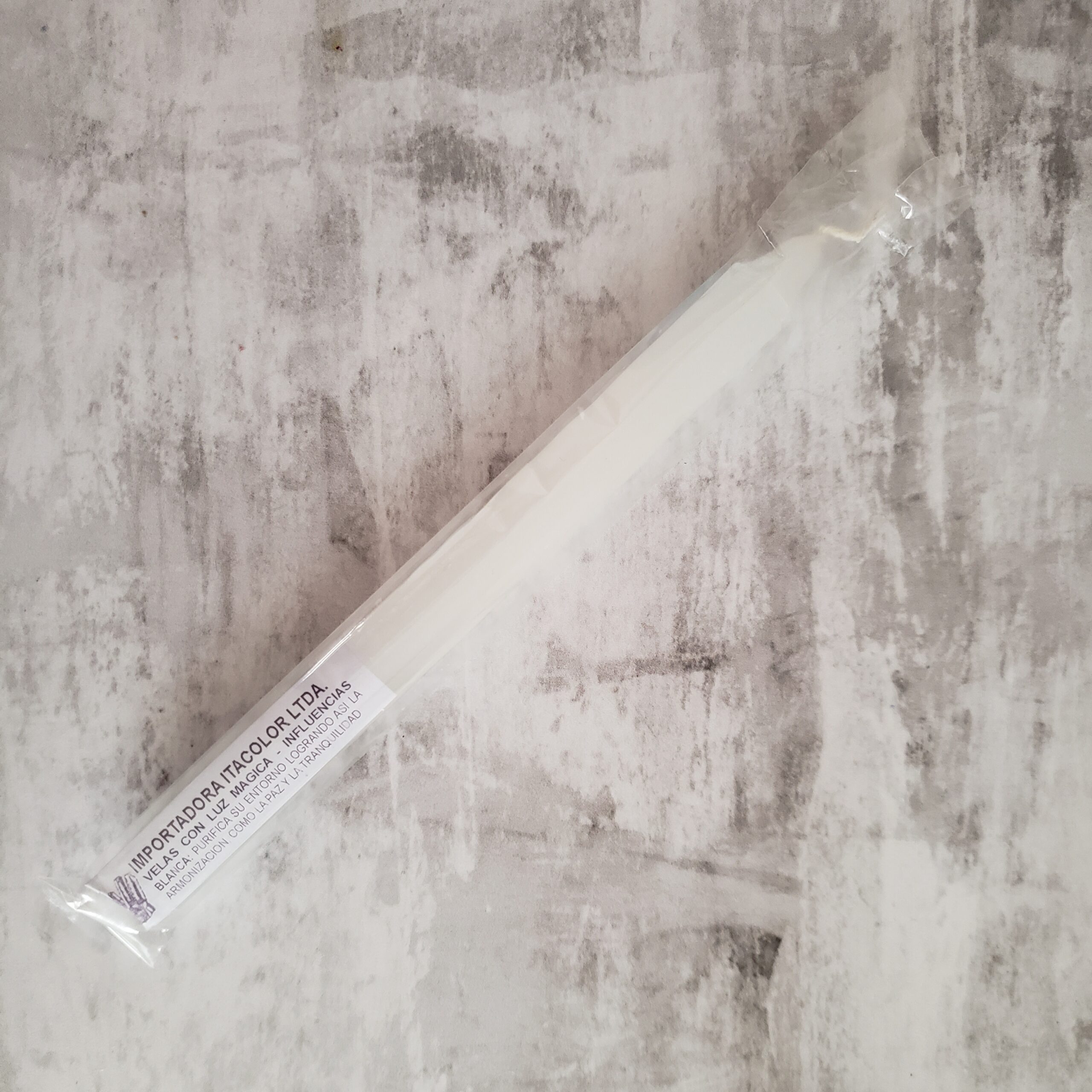 Vela rogativa lisa de parafina solida, 19 cm de alto, 1.5 cm de diámetro, duración 4 a 5 horas.
